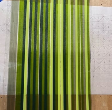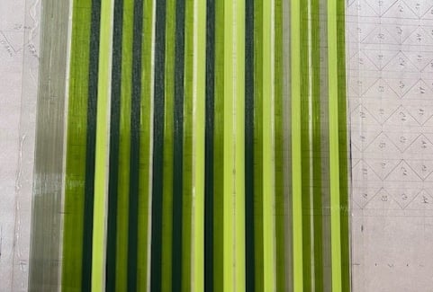 Crafting a glass quilt block is an exciting adventure for any glass artist. This project utilizes a beautiful color scheme primarily featuring greens, which gives a fresh and vibrant look, reminiscent of a lush garden. For this endeavor, we'll begin by arranging 234 pieces of 1mm glass stringers onto a 2mm sheet of clear glass. Think of this step as placing your fabric patches together before sewing them into a full quilt.
